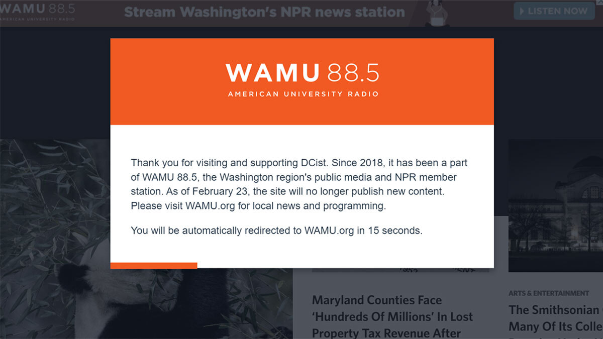 News of the shutdown broke via a banner on DCist's homepage, informing readers that the site would no longer publish new content and directing them to WAMU.org for local news. An exclusive report obtained by Axios confirmed 15 layoffs accompanying the closure.